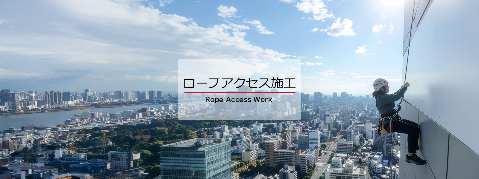 ご安心ください。二重ロープによるバックアップや落下防止措置など、国際基準に沿った安全管理を徹底しています。安全性は足場工法と同等以上と言われています。